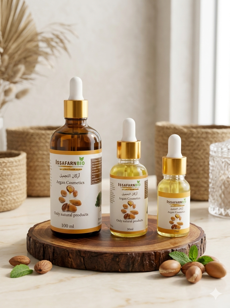 ISSAFARNBIO Cosmetic Argan Oil is a premium natural oil carefully produced by the ISSAFARNBIO Cooperative, specialized in natural and organic Moroccan products.