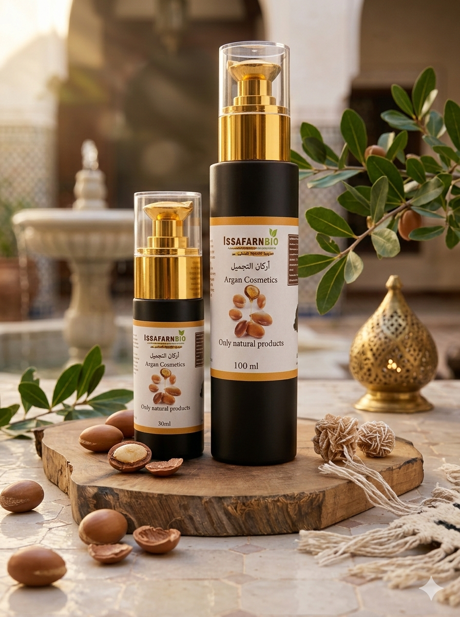 ISSAFARNBIO Cosmetic Argan Oil is a premium natural oil carefully produced by the ISSAFARNBIO Cooperative, specialized in natural and organic Moroccan products.