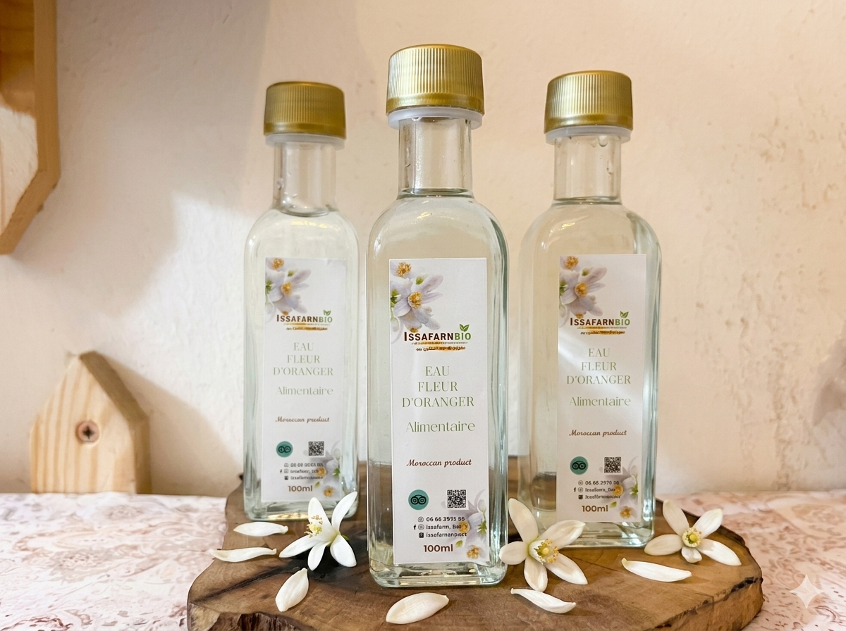 ISSAFARNBIO Orange Blossom Water 100ml is a natural aromatic water carefully produced by the ISSAFARNBIO Cooperative, specialized in natural and organic Moroccan products.
